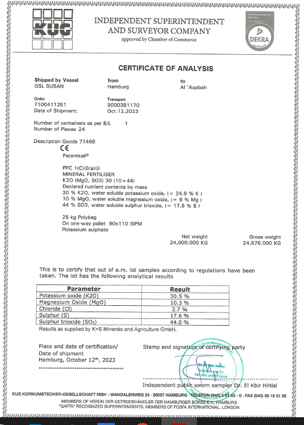 سماد مركب عالي التركيز يحتوي على البوتاسيوم والكبريت والمغنيسيوم .